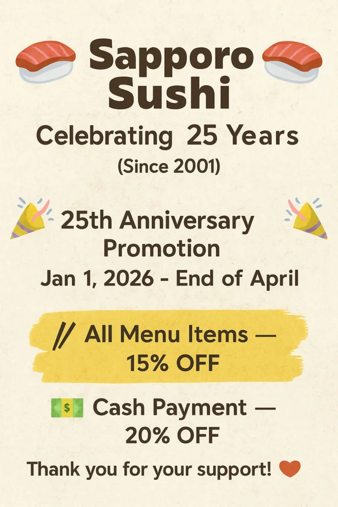SAPPORO SUSHI is Toronto’s finest restaurant if you are looking for traditional ambiance and delicious Japanese cuisine.